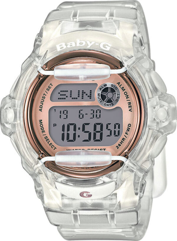 Годинник з яскравим циферблатом і безельними протекторами користуватиметься популярністю серед дівчат, які ведуть активний спосіб життя. Протиударний корпус захищає механізм від ударів та вібрації. Електролюмінесцентне підсвічування висвітлює весь циферблат, після відпускання кнопки світіння триває ще деякий час. Світовий час – 30 міст (29 часових поясів). Автоматичний перехід на зимовий та літній час, можливість увімкнення/вимкнення даної функції. 12-ти та 24-х годинний формат часу. Секундомір з точністю показань 1/100с та часом вимірювання 24ч. Спліт-хронограф. Таймер зворотного відліку від 1хв до 24ч. Лічильник днів – відображає число днів між поточною та іншою датою. Блокнот на 25 осередків пам’яті для запису телефонних номерів та додаткових даних про власників. Функція увімкнення/вимкнення звуку. Сталевий безіль.