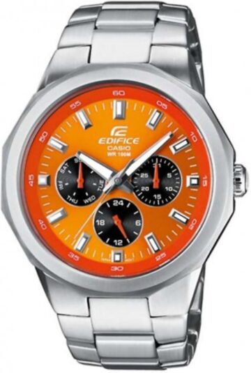 Модель чоловічого годинника EF-332D-2A колекції Casio Edifice має корпус круглої форми виконаний з нержавіючої сталі, з циферблатом синього кольору та індексами захищеним мінеральним склом. Сталевий браслет, кварцовий механізм. А додаткові функції: Календар (число, день тижня), Подвійний час надають зручності. У цьому годиннику можна плавати і пірнати на невелику глибину до 3-5 метрів.