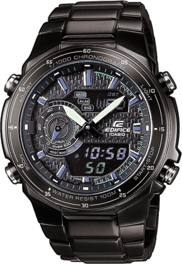 Модель чоловічого годинника EF-558SG-1A колекції Casio Edifice має корпус круглої форми виконаний з нержавіючої сталі з PVD, з циферблатом чорного кольору та індексами захищеним мінеральним склом. Сталевий браслет, хронограф кварцовий. А додаткові функції: Календар (число, день тижня), Секундомір, Тахіметр надають зручності. У цьому годиннику можна плавати і пірнати на невелику глибину до 3-5 метрів.