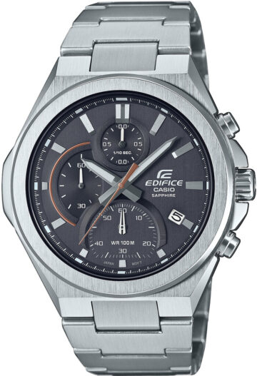 Цей стильний чоловічий годинник Casio Edifice з нержавіючим корпусом і браслетом з нержавіючої сталі має кварцовий механізм, сапфірове скло і водозахист 100 WR. Чорний циферблат з аналоговою індикацією та індикацією дати чудово доповнюється секундоміром і гарантією на 24 місяці.