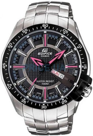 Чорний циферблат, що гільошує. Корпус та браслет виготовлені з нержавіючої сталі, покритої PVD-покриттям. Орієнтовний термін служби батареї – 3 роки. Стрілки мають люмінесцентне нанесення. Складання даної моделі проводилося на сертифікованому заводі Casio, що знаходиться в Китаї. Індикація – арабські цифри.