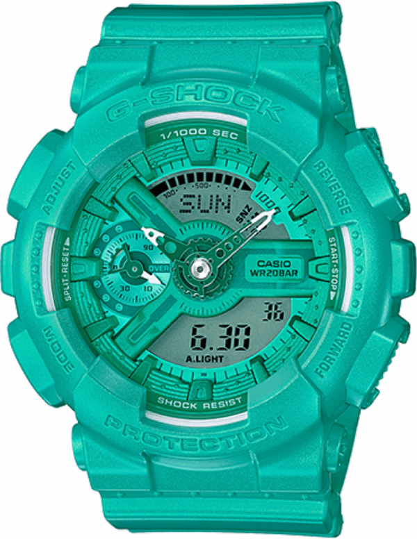 Годинник належить до компактної S-серії. Пластиковий корпус та полімерний ремінець зеленого кольору. Зелений колір циферблат. Дисплей – зелений. Надпотужне автоматичне світлодіодне підсвічування, яке від повороту руки на 45 градусів загоряється яскравим світлом. Удароміцна конструкція корпусу захищає від вібрації та ударів. Таймер зворотного відліку дозволяє засікати час від 1 хвилини до 24 годин з можливістю повтору. Секундомір вимірює з точністю до 1/1000 секунд, 100 годин. межі виміру. Термін служби акумулятора приблизно 3 роки. Застібка ремінця – пряжка.