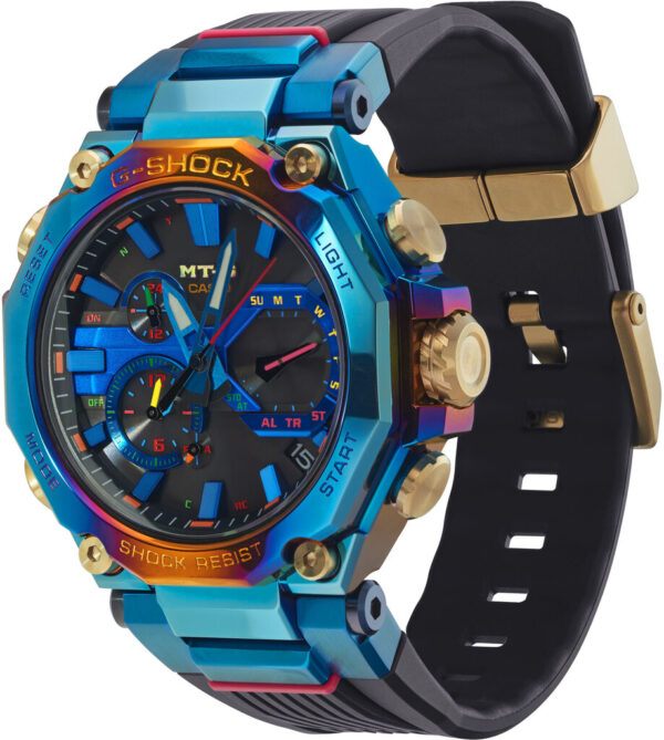 Світи кольорів, що переливаються на безеле та корпусі, а також на багатобарвному циферблаті завдяки райдужному іонному покриттю чітко відрізняють MTG-B2000PH-2AER від інших моделей. Унікальний мотив дизайну натхненний блакитним феніксом, який, згідно зі східною міфологією, приносить сприятливі звістки.