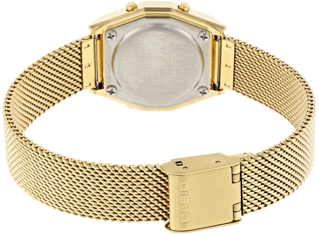 Годинник CASIO LA690WEMY-1EF – це недорогий зручний і міцний виріб, що ідеально підходить для жінок, які люблять вінтажні аксесуари. Золотистий ремінець, сірий дисплей і чорна рамка роблять модель чарівною. Водостійкість, плексигласове скло, циферблат із цифровою індикацією, а також низка додаткових функцій роблять модель ідеальним вибором для тих, хто цінує надійність і комфорт використання.