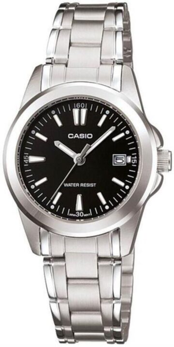 Цей годинниковий аксесуар виробляється на заводі Casio, що має сертифікат якості. Корпус виготовлено з латуні, а браслет з нержавіючої сталі, що робить його міцним і довговічним. На чорному прямокутному циферблаті розташовані годинникові мітки. Скло з мінерального скла, яке має високу міцність і не схильне до появи подряпин. А також має водонепроникність до 30 метрів, що захищає корпус від бризок.